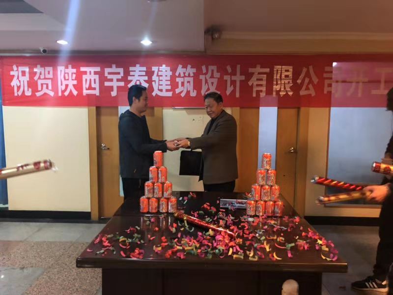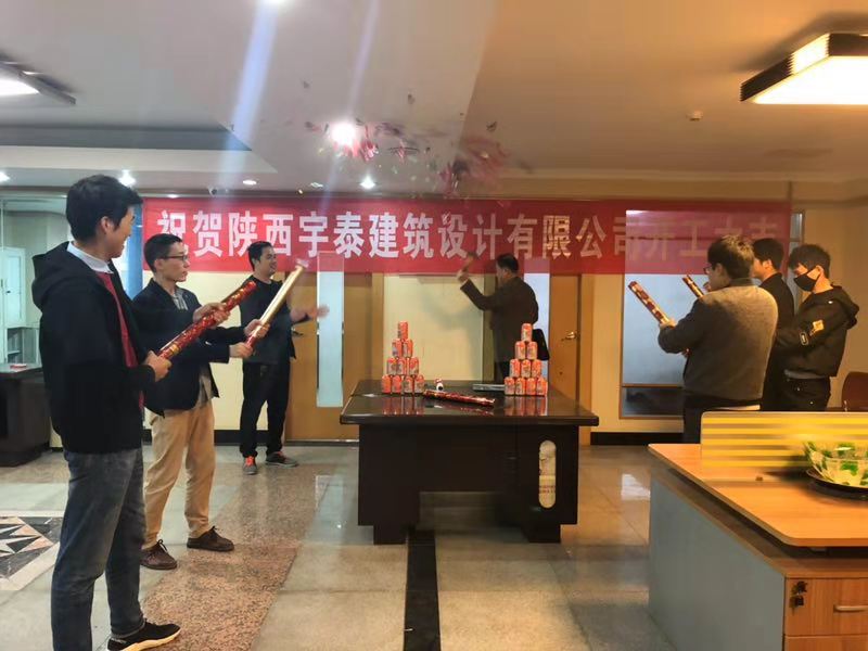 陜西宇泰建筑設計有限公司新購寫字樓位于西安高新區高新路高科大廈十八樓,十月二十五日舉行了開工儀式,公司領導劉新宇、公司員工代表、裝修單位負責人及裝修工人參加了開工儀式,并正式開始施工,元月前后,即可竣工,春節前后即喜遷新宅。